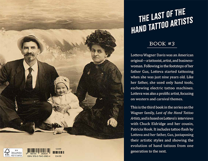 This is the third book in the series on the Wagner family, Last of the Hand Tattoo Artists, and is based on interviews with Lotteva and her cousin, Patricia Hook. It includes tattoo flash by Lotteva and her father, Gus, comparing their artistic styles and showing the evolution of hand tattoos from one generation to the next.